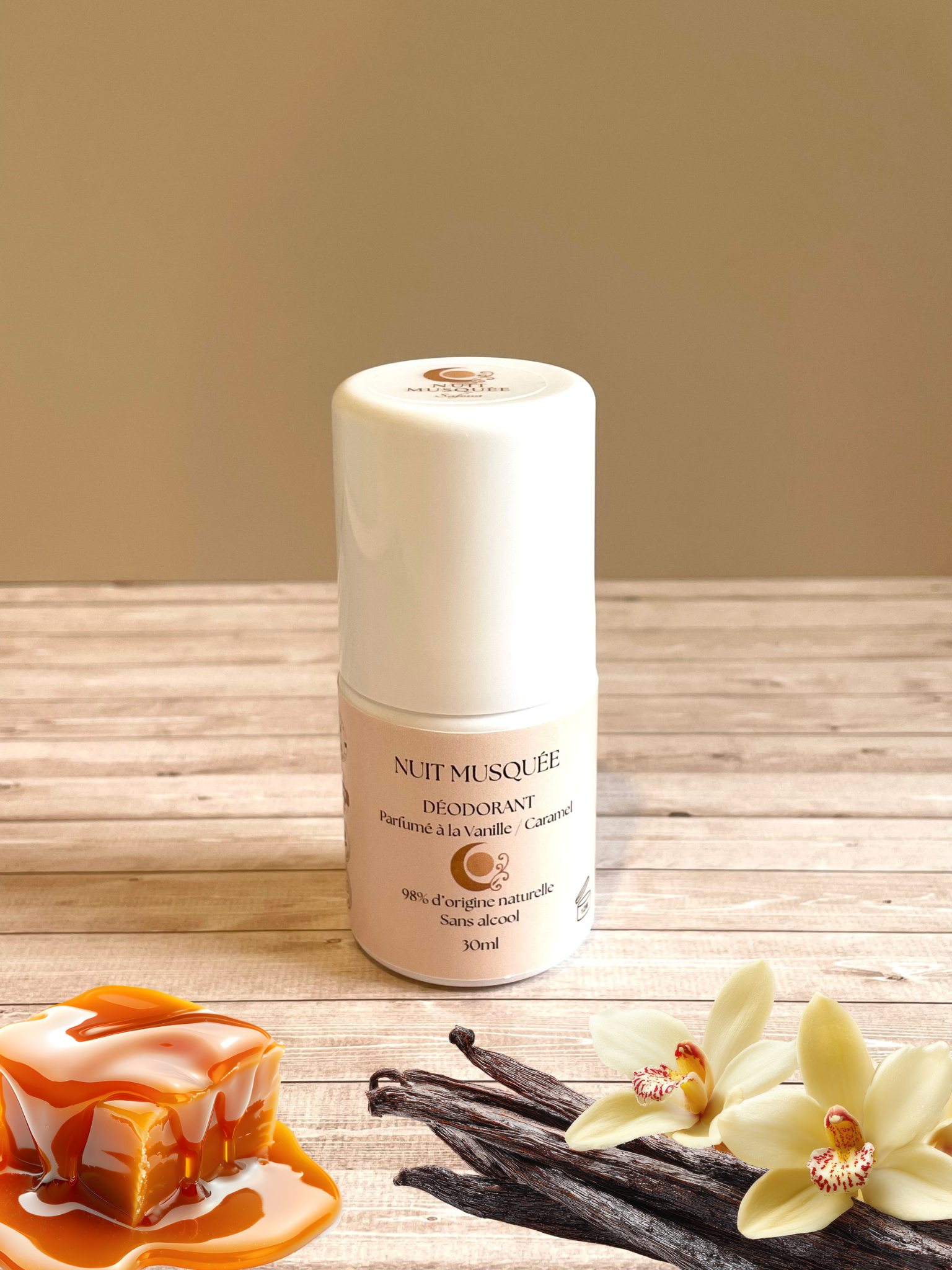 Déodorant Musc Vanille et Caramel – 100% Français, 100% Fraîcheur, 98% d’ingrédients d’origine naturelle 🧴